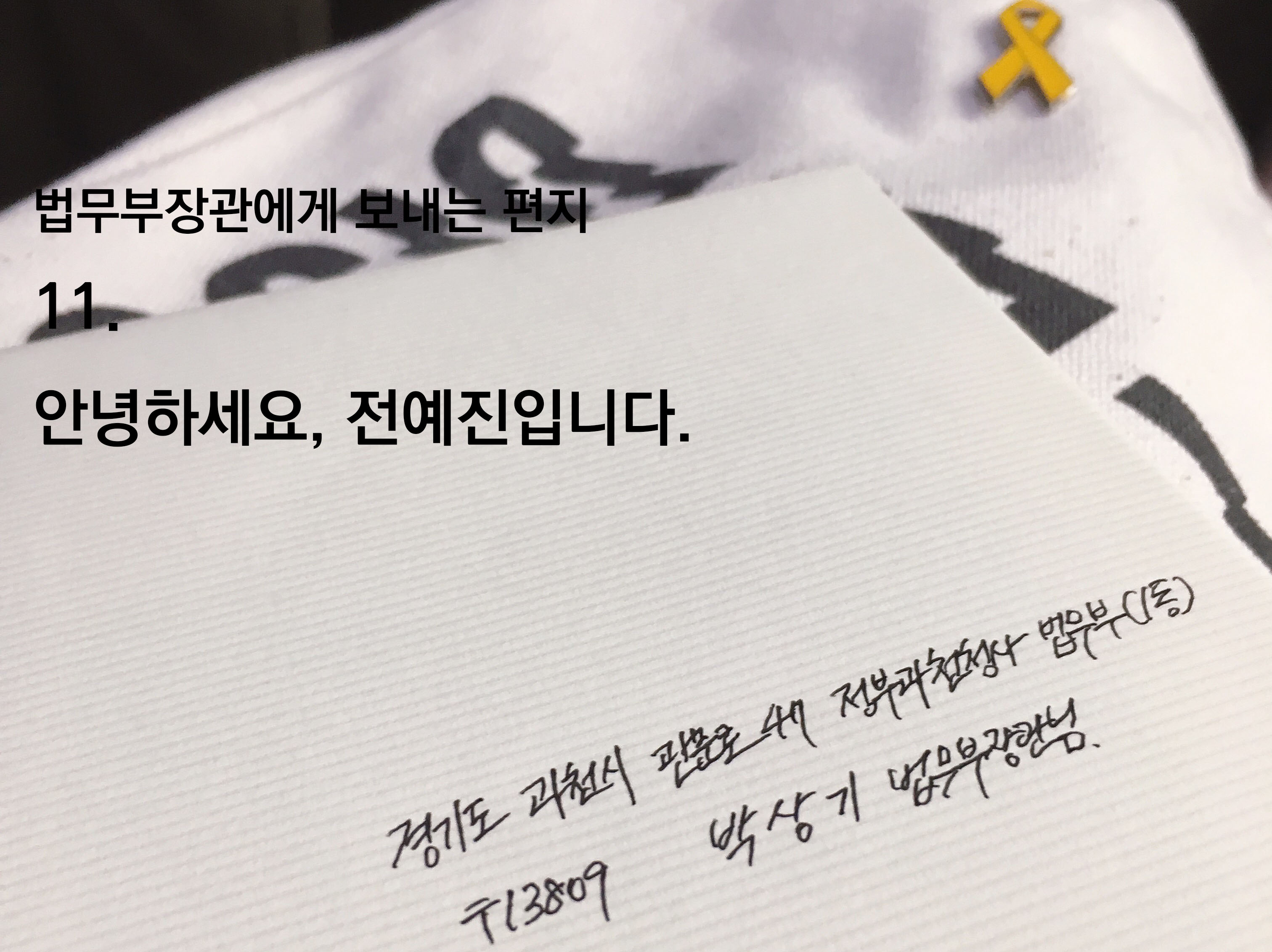 | [법무부장관님께] 8. 안녕하세요, 김윤정입니다. (0) | 2019.04.15 |