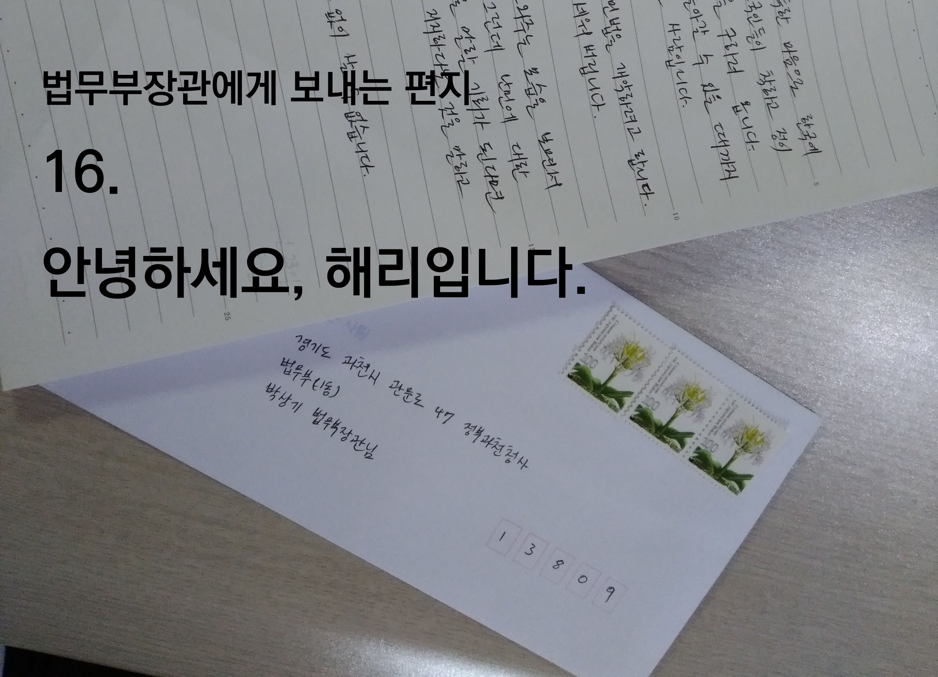 | [법무부장관님께] 15. 안녕하세요, 이민혜입니다. (0) | 2019.04.22 |