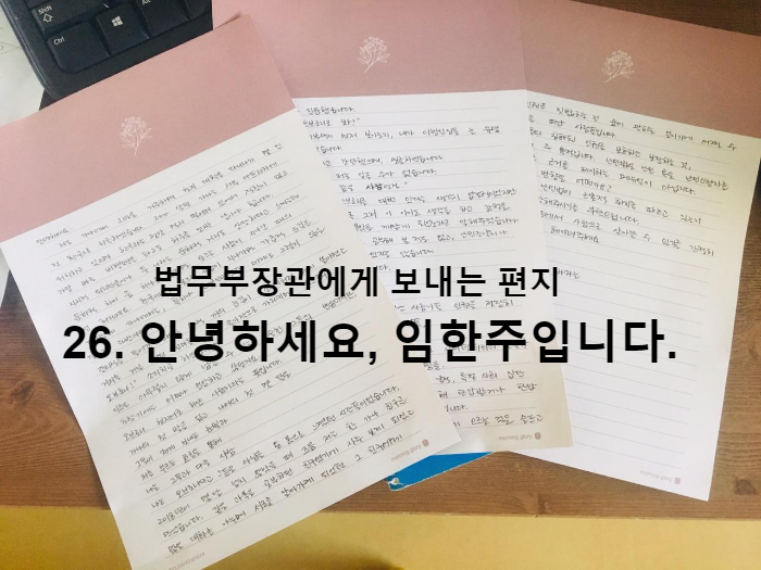 | [법무부장관님께] 22. 안녕하세요, 신지영입니다. (0) | 2019.05.06 |