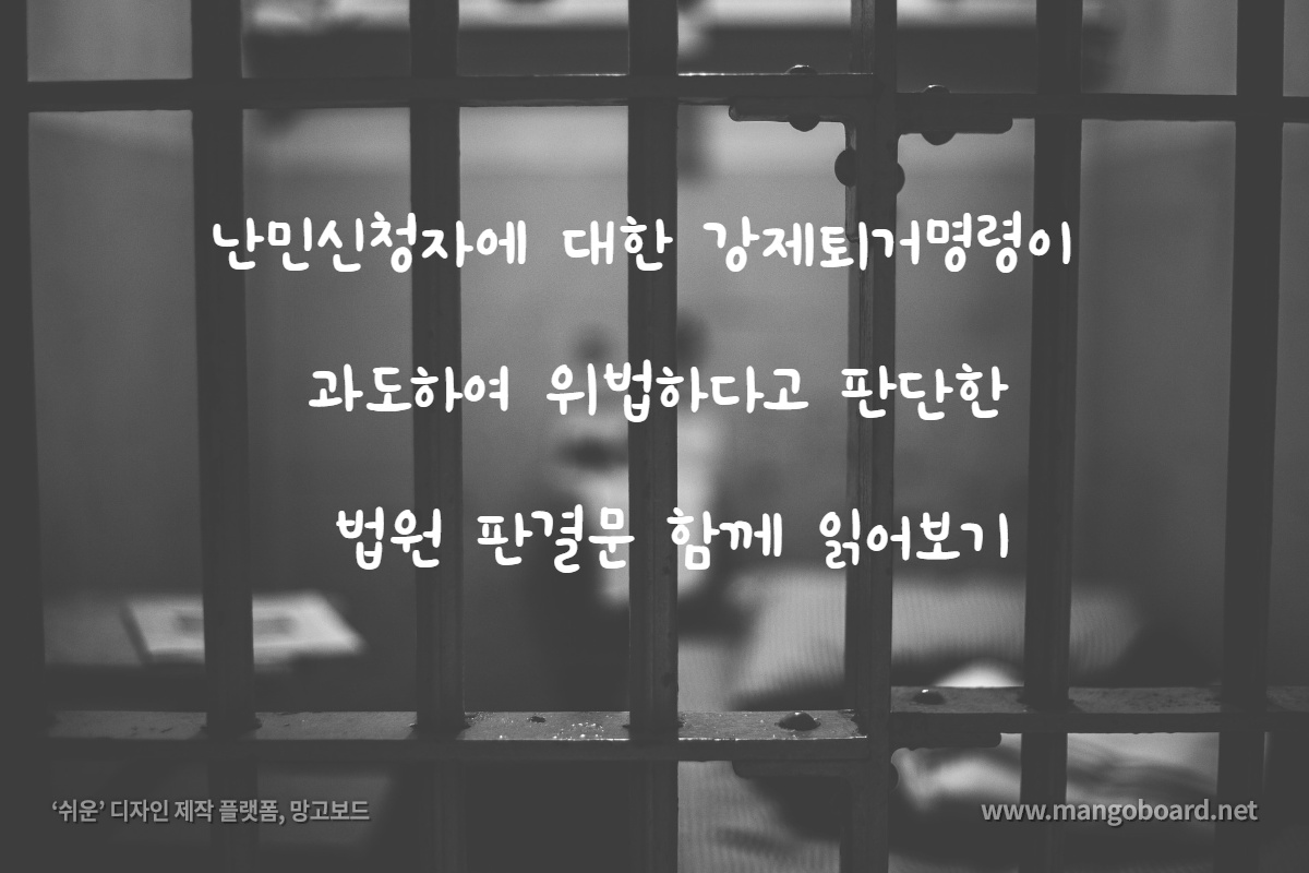 정말 오랜만에 출입국의 행정권력 남용에 제재를 가하는 판결을 받았다. 2019년 12월 10일에 선고된 인천지방법원 2019구단50684 판결은 출입국의 재량권은 무제한 적인 것이 아니며 헌법상의 비례의 원칙을 준수해야 한다는 점, 난민신청자의 강제송환이 금지되므로 (설령 본국으로 실제 송환하지 않는다 하더라도) 장기간 구금을 수반하는 강제퇴거명령은 사안에 비해 과도하다는 점을 확인한 점에서 중요한 의의를 가진다.