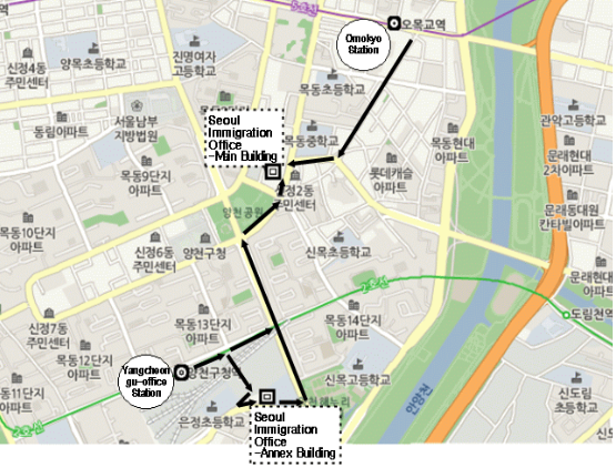 Seoul Immigration Office Main Building 서울특별시 양천구 신정동 목동동로 151 2층 서울출입국·외국인청 본관 2층