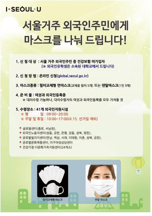 Сөүлд амьдардаг, Эрүүл мэндийн даатгалд хамрагдаагүй гадны иргэдэд маск тараана.