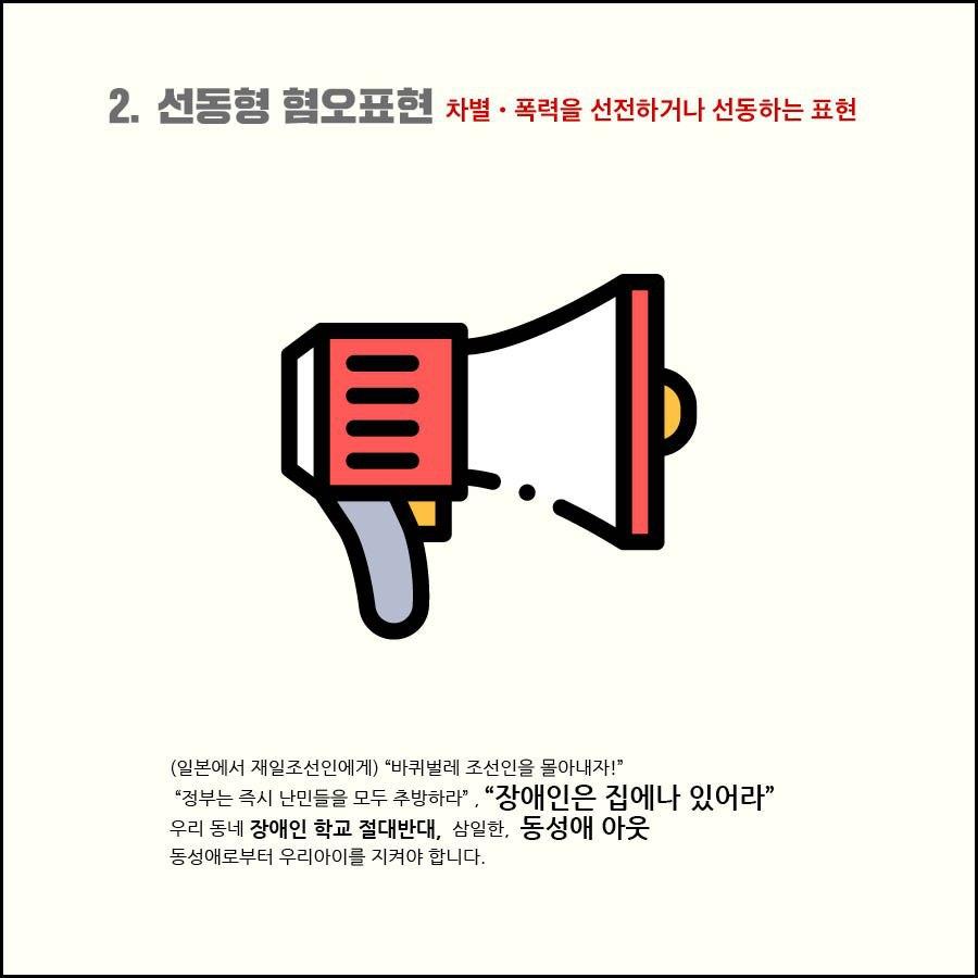 2. 선동형 혐오표현 : 차별‧폭력을 선전하거나 선동하는 표현