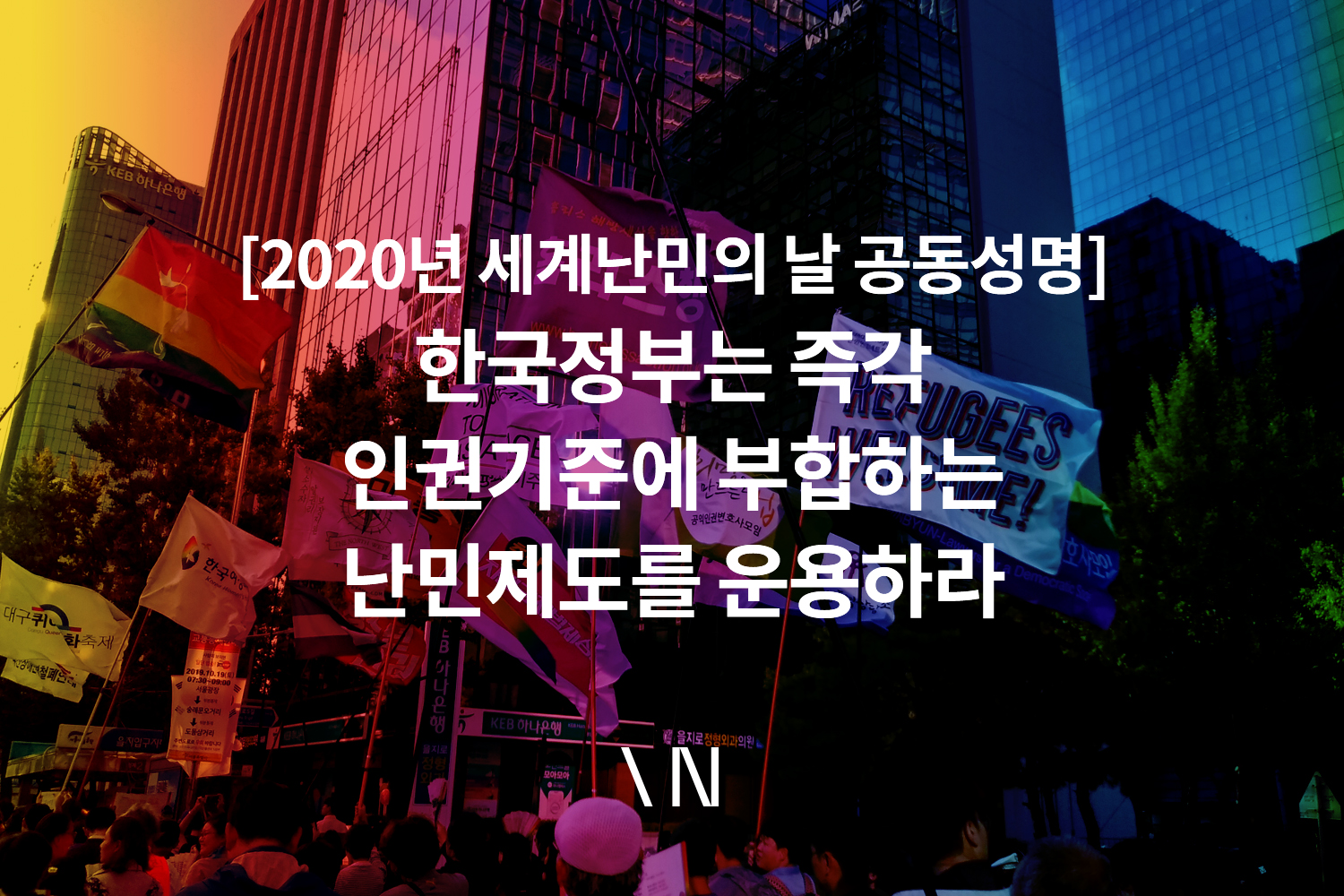 2020년은 대한민국이 난민법을 시행한지 7주년, 난민협약 및 의정서에 비준한지 28년째가 되는 해다. 제도를 시행한지 30년이 되어가고, 누적 난민신청 접수가 6만4천 건을 넘어가고 있음에도 여전히 인권침해가 끊이지 않고 있는 정부의 난민 제도 운용 방식을 강력히 규탄한다.