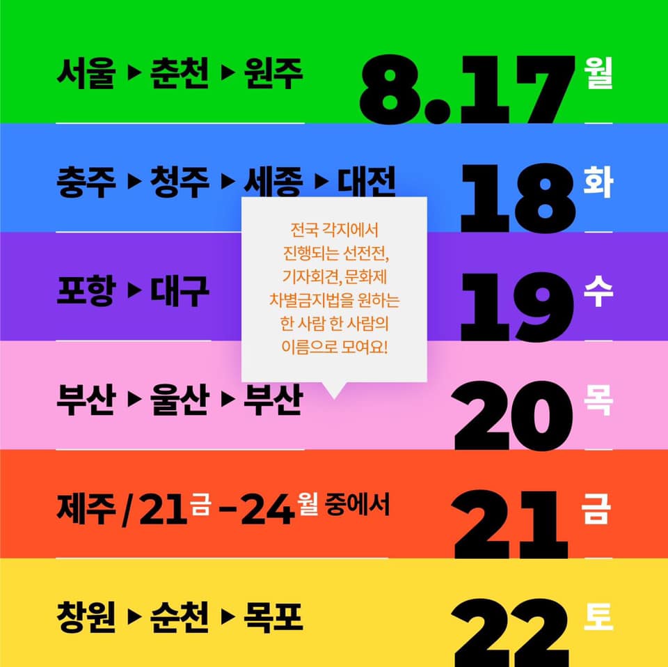 <전국순회 차별금지법 제정 촉구 평등버스> 일정 및 프로그램