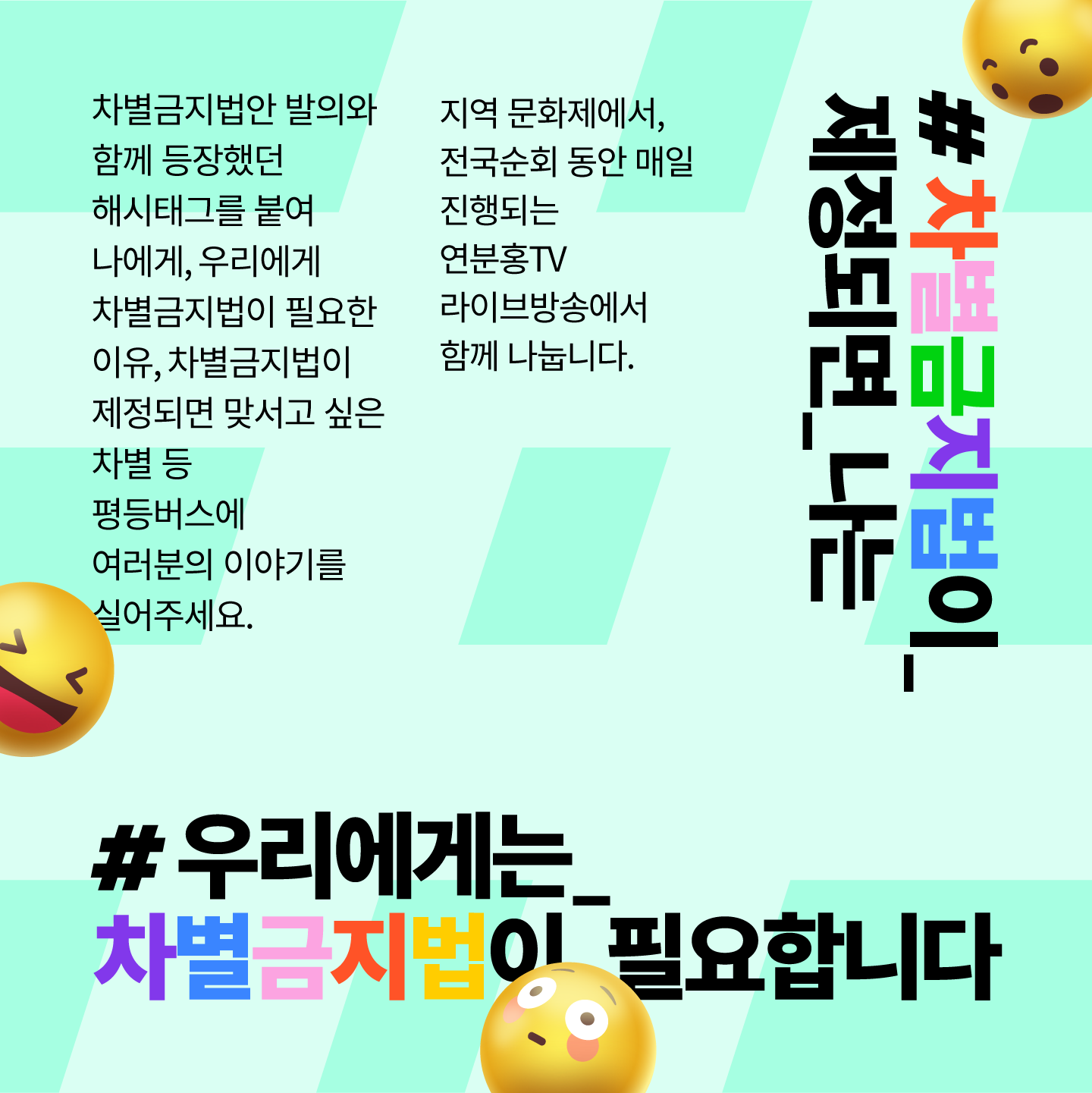 우리에게는 차별금지법으로 나눌 수 있는 ‘우리의 이야기’가 무궁무진합니다.