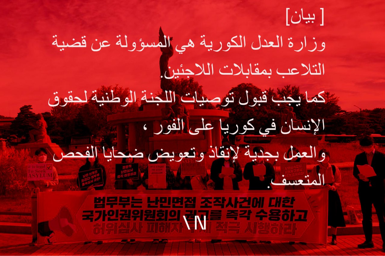 ومن خلال القرار الذي أصدرته اللجنة الوطنية لحقوق الإنسان في كوريا يتضح أن قضية التلاعب بمقابلات اللاجئين هي من مسؤولية وزارة العدل وهي انتهاكات لحقوق الإنسان وليست مجرد أخطاء فردية أو مشاكل تسبب بها بعض الفاحصين أو المترجمين. أيضا حقيقة أن وزارة العدل قد نسيت التزامها بتنفيذ اتفاقية اللجوء بأمانة ووضعت سياسة مراجعة سريعة مجحفة مع وجهة نظر مسبقة ومتحيزة ومشوهة بأن طالبي اللجوء سيسيئون استخدام نظام اللجوء فأصبح غالبية طالبي اللجوء من دول الشرق الأوسط والدول العربية مثل مصر على إثر ذلك ضحايا لانتهاكات حقوق الإنسان؛ لذلك أقر التقرير بحدوث انتهاكات جسيمة لحقوق الإنسان أثناء عملية وضع وتنفيذ سياسات فحص اللاجئين..