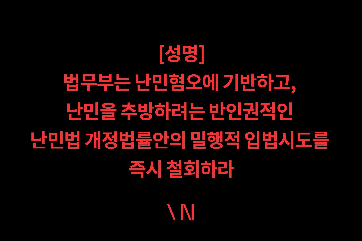 첫째, 정부는 난민혐오에 기반한 반인권적 난민법 개정법률안의 입법절차를 즉시 중단하라.