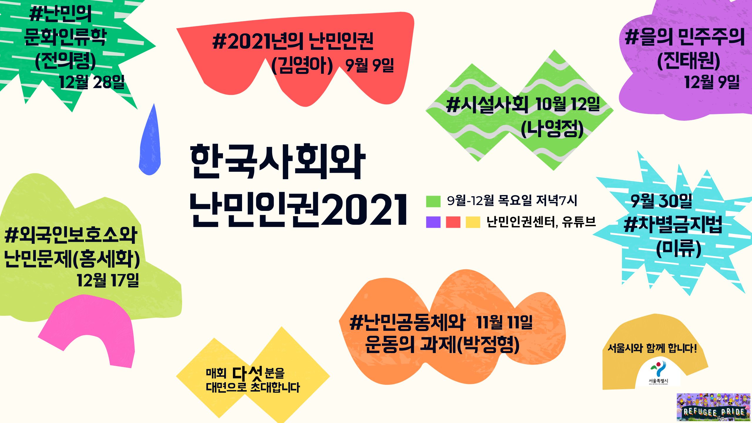 지난 2020년의 <한국사회와 난민인권> 보러가기 https://www.youtube.com/watch?v=h1ba1EDVIs4&list=PL9nIE2fMsS0FgpJN7fuq7WyBmPRQSHP5Q