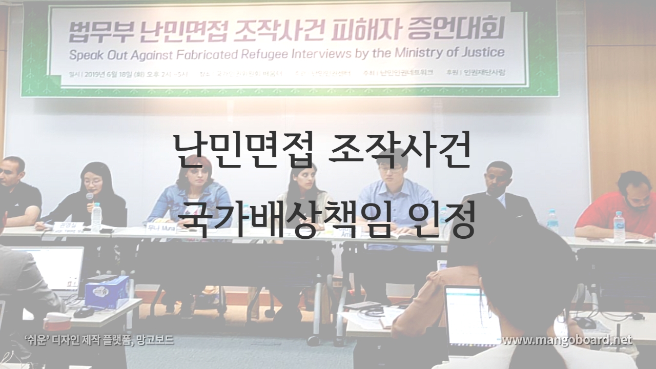 오늘 법무부에서 제 인터뷰를 조작한 것에 대한 마지막 재판이 열렸습니다. 법원은 법무부가 저를 면접을 하는 과정에서 법 위반을 하였음을 인정했고, 손해배상 책임을 인정하면서 제 손을 들어주었습니다. 법정에서 3년이 넘게 싸움을 벌여온 오늘, 우리는 법무부와 조사관, 통역가를 상대로 면접조서 조작의 책임을 묻는 소송에서 승소했습니다. 난민 면접 조작 사건에 힘써주신 변호사와 단체의 노력에 감사드립니다.