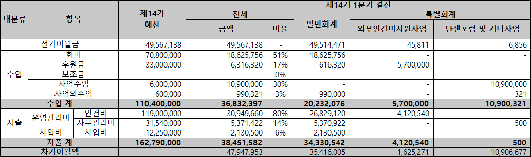- 사업수입 : 난센포럼 및 캠페인을 위해 공모사업에서 지원받은 사업비입니다.