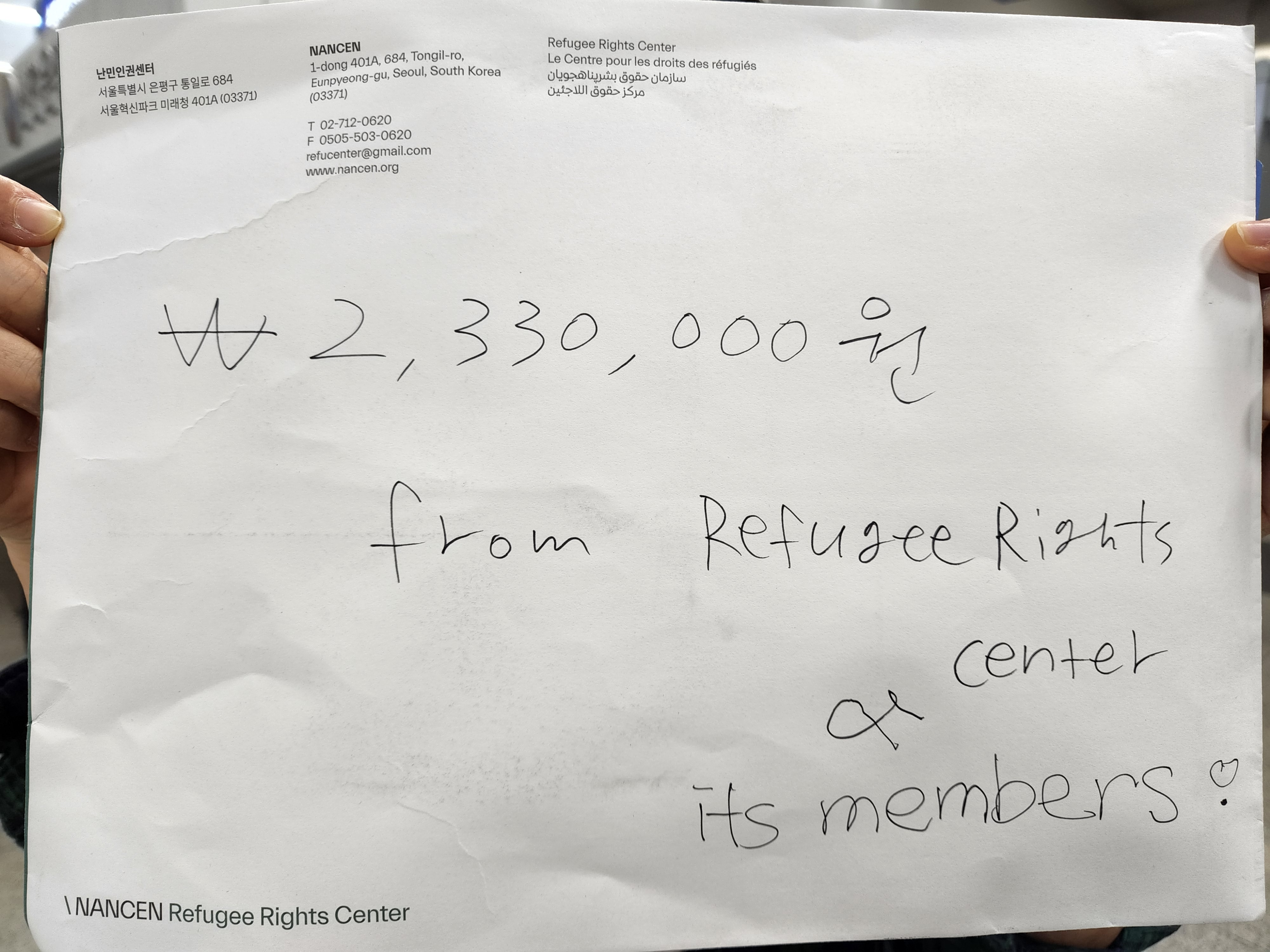 후원확인 또는 성함 누락에 대한 문의는 refucenter@gmail.com로 부탁드립니다. 항상 감사드립니다.