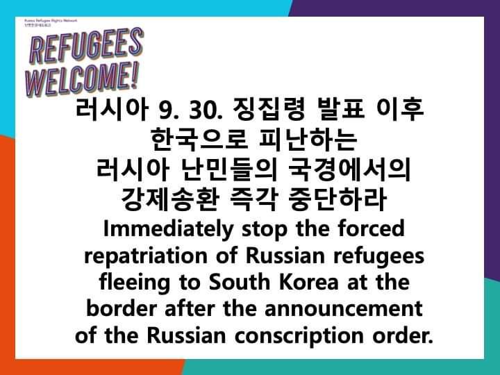 Immediately stop the forced repatriation of Russian refugees fleeing to South Korea at the border after the announcement of the Russian conscription order