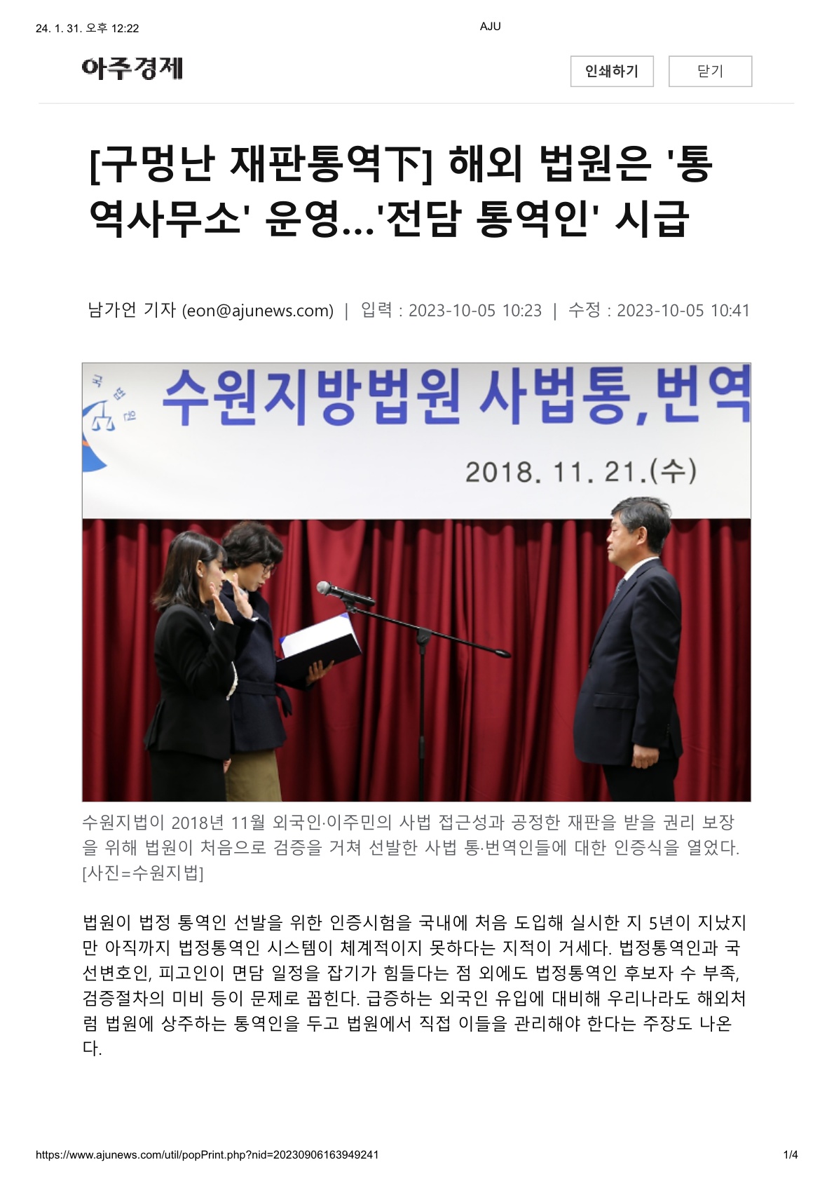 법원, '법정 통번역인 인증평가 시험 실시 계획 공고(2023. 10. 17.)'
