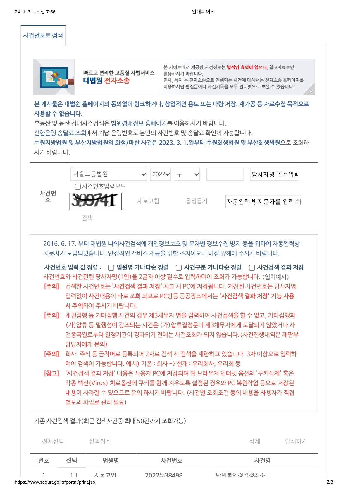 대법원 '나의사건검색' 페이지(좌)와 변론기일통지서(우)