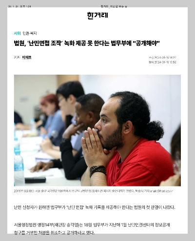 [보도자료] 난민면접영상녹화 정보공개청구소송 1심 승소 (0) | 2024.01.19 |
