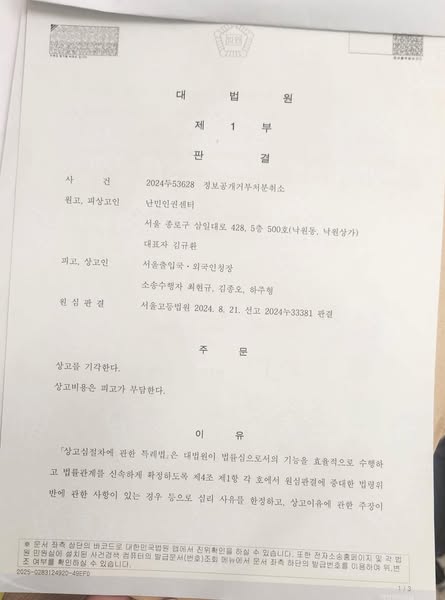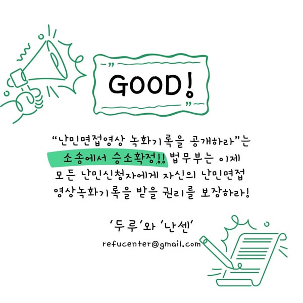 | [승소] 난민면접영상녹화파일 정보공개청구소송 항소심 (0) | 2024.08.22 |