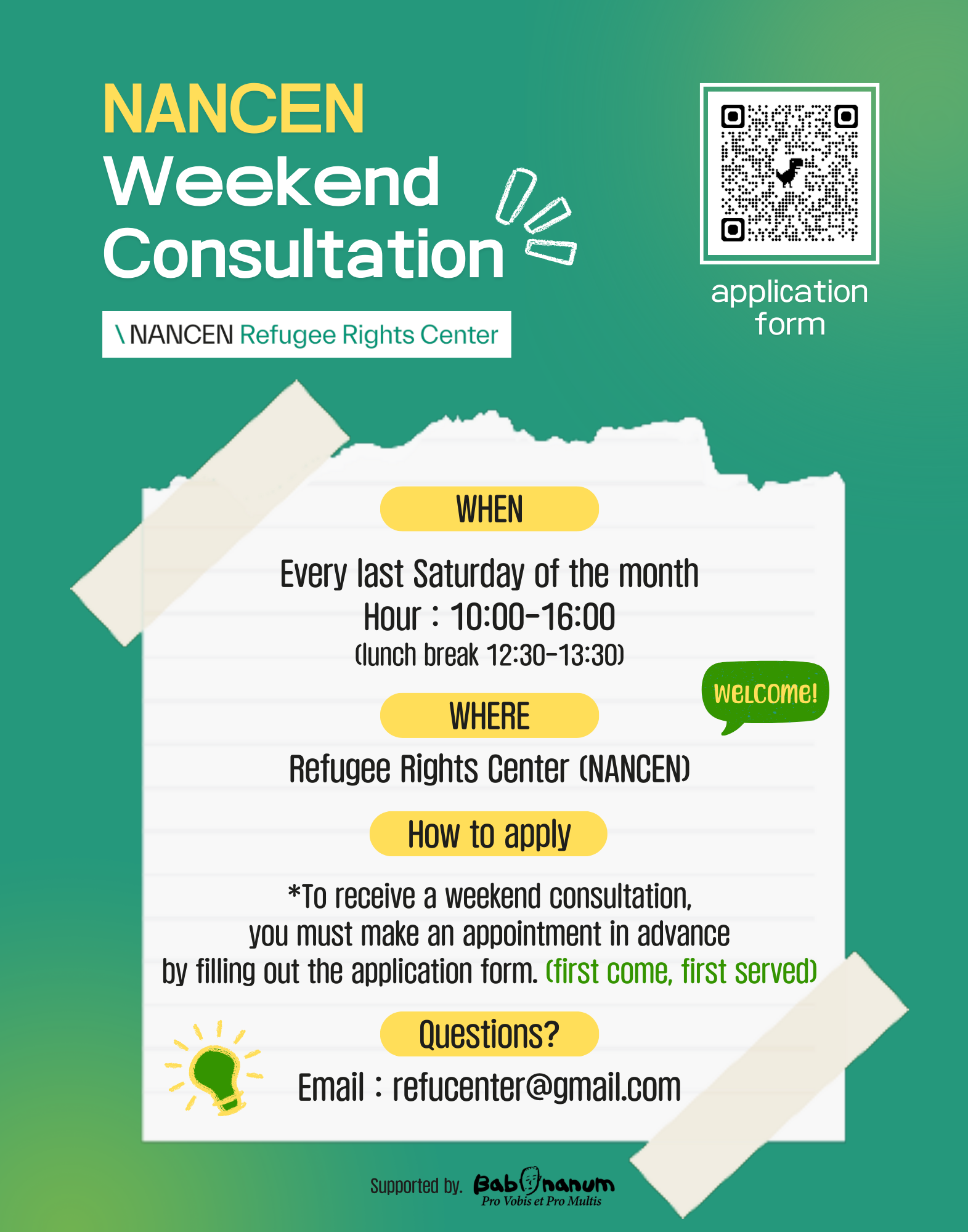 To better accommodate those who find it difficult to visit during weekdays, NANCEN Refugee Rights Center will operate a weekend counseling service on the last Saturday of each month from March through November 2025.