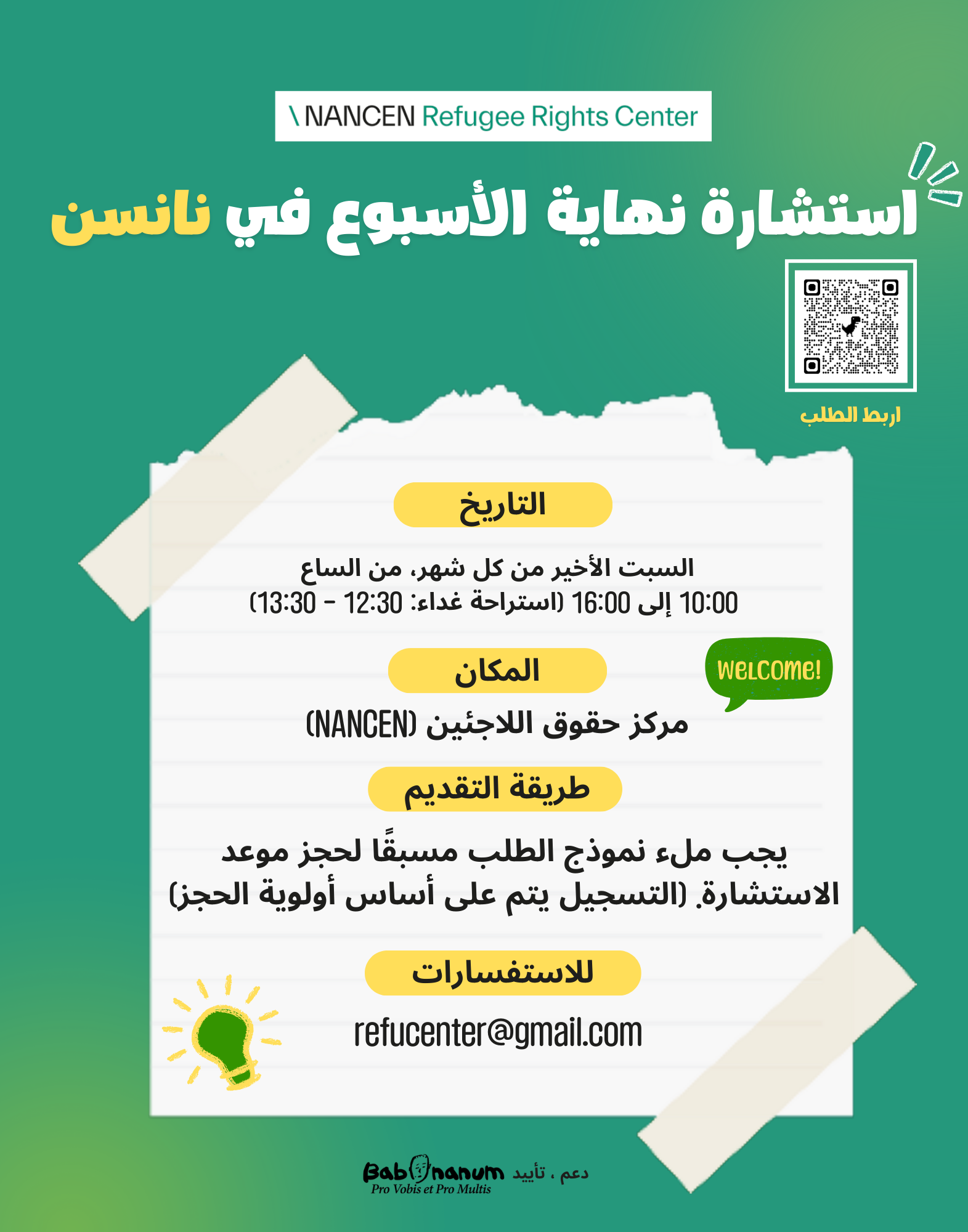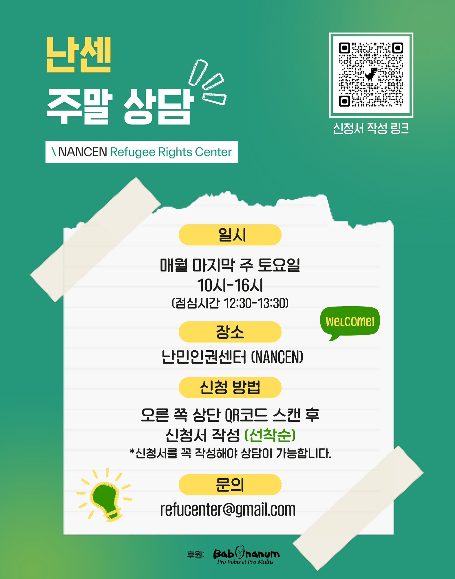 To better accommodate those who find it difficult to visit during weekdays, NANCEN Refugee Rights Center will operate a weekend counseling service on the last Saturday of each month from January through November 2026.