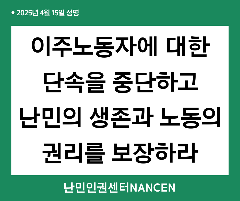 이에 우리는 A에게 가해진 출입국의 폭력적 단속행위와 난민신청자의 생존을 외면하고 허가 없는 취업으로 내모는 법무부의 무책임함을 비판하며, 다음의 사항들을 요구한다.