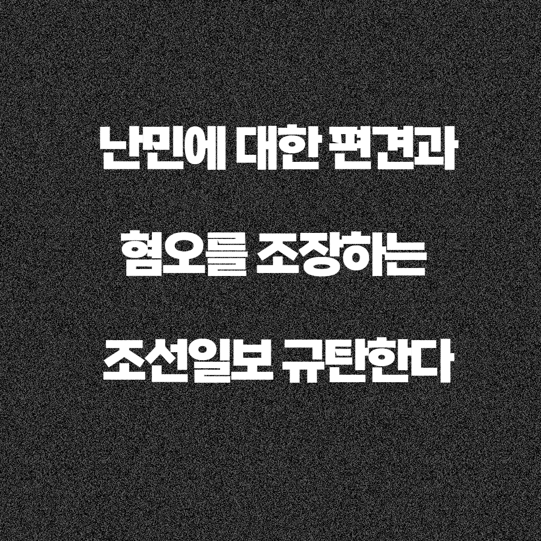 지난 2025년 8월 8일 조선일보에서 발행한 “[단독] 잼버리 와서 난민 신청… 소송 반복하며 2년째 한국 살이 국제 행사 틈타 체류 연장” 기사는 난민 문제에 대해 편향적이고 무책임한 보도로, 난민에 대한 부정적 인식과 혐오를 조장하고 있다.