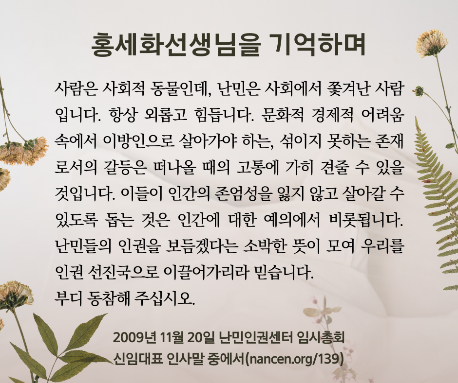 여러모로 쉽지 않은 상황에서도 난민분들의 권리와 난센의 운영을 지지해주셔서 항상 감사드립니다.