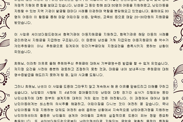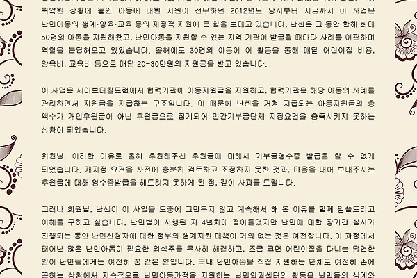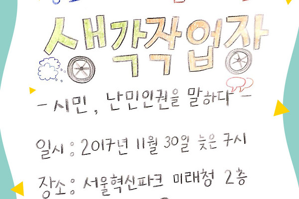 난민인권센터/공지 Notice 썸네일형 리스트형 [공지] 난센의 색깔을 찾아서! 난센이 내년 10주년을 앞두고, 올해 6월 20일 세계 난민의 날을 맞아서 홈페이지와 로고를 새롭게 마련하려고 해요! 난센의 활동을 지켜보고 계신 동료시민분들의 소중한 의견을 모아 난센의 로고와 홈페이지를 만드려고하니 많은 참여 부탁드립니다! 참여해주신 분들 중 3분을 추첨하여 을 보내드리는 이벤트도 진행하고 있으니 많은 관심 부탁드려요^^ 설문링크: https://goo.gl/forms/b08e5HFB4mWhBNr83 로드 중... [공지] 사무실 부재 공지 활동가 워크숍으로 난센은 5월 1-2일 양일 간 방문이나 전화응대가 어렵습니다. refucenter@gmail.com 메일 주시면 5월 3일 연락 드리겠습니다 :) [공지] 난민인권센터 제 10차 정기총회를 개최합니다. 난민인권센터 오시는길 자세히 보러가기 총회자료집 바로 보기 전체보기 버전 한 쪽씩 보기 버전 활동보고서 바로 보러 가기 문의: refucenter@gmail.com, 02-712-0620(화~목) 2017년 기부금영수증 발급 불가 안내 난민인권센터를 후원해 주시는 회원님, 후원자님 안녕하세요. 난민인권센터입니다. 난센이 2017년 후원해주신 후원금에 대해 기부금 영수증 발급이 어렵게 되었다는 공지를 드립니다. 1. 기부금영수증 발급 불가 대상- 2017년 1월 1일~12월 31일까지 난민인권센터로 후원해주신 후원자님 (CMS 및 직접 납부) 2. 기부금 영수증 발급이 왜 불가능하다는 것인가요? 비영리민간단체가 민간기부금단체로 지정되기 위해서는 “단체의 수입 중 개인 회비 내지는 후원금이 차지하는 비율이 100분의 50을 초과하여야 한다”는 요건을 충족하여야 합니다. 그런데 난센이 2016년 국제아동구호개발 NGO인 세이브더칠드런의 난민아동지원사업에 협력하여 지원하고 있던 약 50명의 아동에 대해 매달 20-30만원의 어린이집 비용, 양.. 난민인권센터의 회원님께 동료시민과 함께하는 [생각작업장] 11.30일 7시 안녕하세요. 난센입니다. 이번주 목요일 난센에서는 난민인권에 대한 동료시민분들의 생각을 공유하기 위한 [생각작업장]을 열게 되었습니다. [생각작업장]은 말 그대로 동료시민들이 자신의 생각을 '공통자원'으로 공유하고 이를 통해 서로 배우며 "따로이면서 같이"다양한 생각들을 '제작'해보는 작업장을 뜻합니다. 이번 생각작업장은 '난민인권', '난민문제'에 대한 동료시민들의 질문, 관심 등을 모아보는 자리가 될 것 같습니다. 생각작업장에 규칙은 따로 없습니다만. 아래의 내용이 지켜지도록 함께 노력해주셔야 합니다. -평등한 발언권 갖기 -서로가 이해할 수 있는 언어로 말하기 -서로의 생각에 대해 평가하지 않기 -참여하는 모든이를 위해 안전한 자리 만들기 1. 일시 : 11.30일(목) 7시 2. 장소 : 혁신파크.. 난민인권센터의 회원님께 무지개는 국경을 넘는다 : 소수자 난민 더하기 교육 난민을 지원하고, 성소수자 인권활동을 하고, HIV감염인을 상담했던 이들이 모여서 네트워크를 구성했습니다. 존엄과 자유를 위해 국경을 넘는 이들의 정체성은 매우 다양하고, 국경을 넘는 이유 가 되고 있지만 난민을 지원하는 과정에서 개인의 삶과 역사는 잘 다루어지지 않습니다. 서로 알고 있어야 하는 정보가 부족하다보니 효과적이고 효율적인 지원이 이루어지지 못하고 있습니다. 심지어 지원하는 과정에서 인권침해적인 사건이 발생하기도 합니다. 잘 모르는 것을 묻고, 서로 배우며, 우리가 만나고 있는 소수자 난민을 더 적극적으로 지원하고자 합니다. 소수자 난민 지원경험을 나누고, 활동가 스스로의 역량을 키우고자 합니다. 그리고 소수자 난민이 경험하는 현실을 이해하고 이를 바꾸기 위해 함께 노력하고자 합니다. 무지개.. 이전 1 ··· 5 6 7 8 9 10 11 ··· 29 다음
