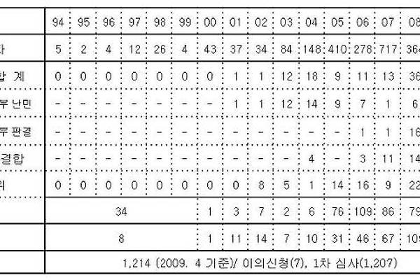 정보공개청구 썸네일형 리스트형 2025 난민인권센터 법률지원단 사례보고회 자료집 및 후기 개 회 사 로펌공익네트워크가 난민인권센터와 업무협약을 맺고 난민 법률지원 활동에 나선지 벌써 8년째가 되었습니다. 그 동안 많은 로펌들이 난민 법률지원 활동으로서 난민불인정처분취소소송 수행, 인천공항 난민인정심사 불회부사건 행정 소송 수행, 난민 관련 각종 정보공개청구 소송 수행, 난민 체류자격 관련한 소송 수행, 헌법 소원 사건 등 다양한 법률 쟁점에 관한 활동을 수행하였고 상당 수 소송에서 승소하여 난민 관련 제도 개선에 기여하는 등의 성과도 이루어 냈습니다. 비록 난민소송을 통해 난민으로 인정받는 사건 수는 아직 많지 않은 상황이지만, 난민 관련 법리를 발달시키는데 난민법률지원 변호사단 여러분들이 큰 기여를 해왔고, 법원에서도 난민의 변호사 조력을 받을 권리에 관해서 고민을 하기 시작하였습니다. 다.. [보도자료] 난민면접영상녹화 정보공개청구소송 1심 승소 법무부는 난민면접 영상녹화기록 교부를 거부해 온 위법한 관행을 즉각 시정하고, 난민신청자의 당연한 권리를 보장하라 난민인권센터가 지난 2023. 3. 31. 제기한 난민신청자의 난민면접 영상녹화기록에 대한 정보공개청구소송에 대하여 서울행정법원(제14부)은 2024. 1. 18. 원고승소판결을 선고하였습니다(서울행정법원 2023구합60339). 난민인권센터는 난민신청자의 난민불인정결정에 대한 이의신청을 조력하면서 2022. 12. 14. 서울출입국외국인청장에 대하여 난민신청자의 난민면접 영상녹화파일의 정보공개청구를 하였으나 서울출입국외국인청장은 2023. 1. 2. 이를 거부하는 ‘비공개결정’을 내렸습니다. 이에 난민신청자의 권리구제를 위하여 이 사건 소를 제기하게 되었습니다. 난민면접은 난민심사의 핵심이.. 2020년 4월자 난민체류지침 공개 지난 3월 30일 선고된 난민체류지침 정보공개청구소송에서 서울고등법원은 법무부장관에 대하여 난민신청자 등 체류관리 및 사범심사 중 '위변조 여권 행사자 및 밀입국자 조치사항'의 내용 및 '밀입국자에 대한 체류허가 및 사범심사'의 내용을 제외한 나머지 난민체류지침 일체를 공개하도록 판결하였다. 이에 판결이 확정된 직후인 4월 14일 난민인권센터는 난민인정심사·처우·체류 지침 일체의 공개를 청구하였다. 법무부는 4월 27일 이 가운데 2020년 4월자 체류관리 및 사범심사에 관한 사항만을 공개한 후, 그 밖의 지침 전체에 대해서는 공개시 출입국관리행정에 있어 국가의 중대한 이익을 현저히 침해할 우려가 있고, 난민인정심사 업무의 공정성을 저해할 수 있다는 이유로 비공개하였다. 공개된 ‘난민신청자 등 체류관리 .. 난민신청 철회 사유로 돌아보는 난민신청 과정의 문제점 난민인권센터는 법무부를 상대로 다음과 같은 내용의 정보공개청구를 진행했습니다. ① 2010년부터 2012년 6월말 현재까지 난민신청자 중 소재불명을 이유로 종결 처리된 건의 연도별 현황② 2010년부터 2012년 6월말 현재까지 난민신청자 중 소재불명 처리 후 재신청한 건의 연도별 현황③ 2010년부터 2012년 6월말 현재까지 난민신청 중 철회한 건에 대한 사유별 현황 지난 12일자로 정보공개청구 결과가 도착했습니다. 1. 난민신청자 중 소재불명을 이유로 종결 처리된 건의 연도별 현황(단위 : 명) 총계 2010 2011 2012.06 267 211 27 29 2. 난민신청자 중 소재불명 처리 후 재신청한 건의 연도별 현황(단위 : 명) 총계 2010 2011 2012.06 54 9 36 29 3. 난.. 국내 난민 현황(2012년 5월 31일) 2012년 5월 31일까지 난민신청자 및 인정자 현황에 대한 통계가 나왔습니다. 그래서 지난해까지의 현황 자료와 합산해 통계를 내보았습니다. - 출처 : 법무부, 정보공개청구 글쓴이 주 - 법무부에서는 전체 인정 난민의 수에 있어 취소자의 수를 반영하지 않아도 290명이 맞다는 통계를 제시합니다. 1. 연도별 통계 2011년에는 처음으로 난민지위 신청자가 1천명을 넘었습니다. 그래서 난민법 제정의 필요성과 면담관 수의 증가 등 법무부 난민 업무의 변화에 대한 필요성이 더욱 탄력을 받았었습니다. 2012년에는 2011년보다 난민지위 신청자의 수가 더욱 늘어날 예정입니다. 2012년 5월 현재까지 총 590명이 신청함으로써, 산술적으로 2012년 연말까지 1400명 이상이 난민지위를 신청할 것으로 예상됩니다.. 2010년 연말 기준 난민신청/인정자 통계 난민인권센터는 법무부에 대한 정보공개청구 등을 통하여 확인된 2010년 연말 기준 난민관련 통계를 정리하였습니다. 자세한 내용은 아래를 참조해주시고, 통계 자료는 첨부파일을 확인해주시기 바랍니다. 1. 연도별/ 법적지위별 난민신청자 및 인정자 통계 구분 신청 인정 인도적 지위 불허 철회 전체 법무부 심사 행정 소송 가족 결합 1차 심사 이의 신청 법무부 소계 1994 5 0 0 0 0 0 0 0 50 39 1995 2 0 0 0 0 0 0 0 1996 4 0 0 0 0 0 0 0 1997 12 0 0 0 0 0 0 0 1998 26 0 0 0 0 0 0 0 1999 4 0 0 0 0 0 0 0 2000 43 0 0 0 0 0 0 0 2001 37 1 1 0 1 0 0 0 2002 34 1 1 0 1 0 .. 2009년 말 기준 한국 내 난민현황 난민인권센터(NANCEN)는 매년 2회에 걸쳐 국내의 난민현황을 파악하고 분석하고 있습니다. 2009년 말 기준으로 파악된 가장 최근의 난민현황과 지난 1년 간 한