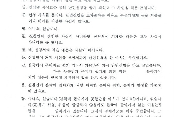한국 난민 썸네일형 리스트형 [난민기고] 감사의 말들 ※ 난민인권센터에서는 한국사회 난민의 다양한 경험과 목소리를 담고자 참여작가를 모시고 있습니다. 난민 여러분의 적극적인 참여를 기다립니다. 문의: refucenter@gmail.com※ 본 게시물은 한국 거주 난민의 기고글로 난민인권센터의 공식 입장과 다를 수 있습니다. 원문은 하단의 링크를 참고해주시기 바랍니다. 본 게시물은 난민인권센터와 저자의 허가 없이 무단 편집, 사용이 불가합니다. 감사의 말들 아숨타 저의 이름은 아숨타입니다. 저는 톰이라는 우간다 사람과 결혼해 다섯 살인 미시와 세 살인 폴라니라는 사랑스러운 두 딸을 두고 있습니다. 저희 가족은 현재 대천에서 살고 있는데 아름답고 조용하고 사람들도 친절해 아이들 키우기에 좋은 곳입니다. 저는 2011년 인천 공항을 통해 한국에 들어와 서울 한남.. [난민기고] 그레이스의 한국 살이 ※ 난민인권센터에서는 한국사회 난민의 다양한 경험과 목소리를 담고자 참여작가를 모시고 있습니다. 난민 여러분의 적극적인 참여를 기다립니다. 문의: refucenter@gmail.com※ 본 게시물은 한국 거주 난민의 기고글로 난민인권센터의 공식 입장과 다를 수 있습니다. 원문은 하단의 링크를 참고해주시기 바랍니다. 본 게시물은 난민인권센터와 저자의 허가 없이 무단 편집, 사용이 불가합니다. 그레이스의 한국 살이 글 : 놀라운 은총 저는 난민 신청을 하고 석 달에 한 번씩 출입국관리사무소에 방문해 외국인 등록증을 연장받았습니다. 난민신청 1차 심사에서 지위를 인정받지 못해 이의신청했지만 또 거부당했습니다. 제가 발급받은 외국인등록증으로는 일을 할 수가 없습니다. 집세와 식용품, 의류 등 생활비도 많이 듭니.. My Experience in South Korea We are looking for essay writers who will help promote the awareness of refugee rights in Korea. NANCEN wants to let the voice of refugees heard as they want to be heard in Korea society. We wish Koreans could come to understand that refugees are not to be feared or pitied. If you are interested in this project, please contact to refucenter@gmail.com, Ku. MY EXPERIENCE IN SOUTH KOREA AMAZING GRA.. [난민기고] 가족의 서울살이 ※ 난민인권센터에서는 한국사회 난민의 다양한 경험과 목소리를 담고자 참여작가를 모시고 있습니다. 난민 여러분의 적극적인 참여를 기다립니다. 문의: refucenter@gmail.com※ 본 게시물은 한국 거주 난민의 기고글로 난민인권센터의 공식 입장과 다를 수 있습니다. 원문은 하단의 링크를 참고해주시기 바랍니다. 본 게시물은 난민인권센터와 저자의 허가 없이 무단 편집, 사용이 불가합니다. 가족의 서울살이 글 : 빅팀 대한민국에서 난민 신청을 한 이후 제 가족의 삶은 더 어려워졌습니다. 저희는 아이들 고등학교 때문에 서울에서 살고 있습니다. 서울로 오기 전에는 인천에서 살았습니다. 저희 가족은 한국어를 배우기 위해 교회에 갔는데 설교를 듣고 좋은 사람들을 만나게 되며 결국 기독교로 개종하게 되었습니다. .. [난민법 5주년] 악의적 난민심사 중단하고 제대로 심사받을 권리 보장하라 [난민법 5주년] 악의적 난민심사 중단하고 제대로 심사받을 권리 보장하라 2017년 8월, 난민인권센터는 난민신청자들의 면접 조서가 허위로 작성된 사례를 여러 건 발견했습니다. 모두 서울출입국외국인청 공무원 조00이 담당하고 아랍어 통역자 장00가 통역한 면접에서 일어난 일이었습니다. 이전에도 난민신청자들이 심사과정에서 부당한 대우를 받는 일이 있었습니다. 가족이 함께 난민신청했다는 이유로 신청인 개개인에 대한 면접조사가 생략되거나, 심사가 예/아니오 식으로 강압적인 분위기 속에 진행되거나, 난민면접 중 담당 공무원이나 통역인의 고압적 태도와 폭언이 있거나, 신청인의 국적과 성별, 정치 및 종교적 배경을 고려하지 않은 통역인 때문에 신청인이 자유롭게 충분히 진술할 수 있는 기회를 보장받지 못하는 등 난민.. [난민기고] 삶이라는 도전 ※ 난민인권센터에서는 한국사회 난민의 다양한 경험과 목소리를 담고자 참여작가를 모시고 있습니다. 난민 여러분의 적극적인 참여를 기다립니다. 문의: refucenter@gmail.com※ 본 게시물은 한국 거주 난민의 기고글로 난민인권센터의 공식 입장과 다를 수 있습니다. 원문은 하단의 링크를 참고해주시기 바랍니다. 본 게시물은 난민인권센터와 저자의 허가 없이 무단 편집, 사용이 불가합니다. 삶이라는 도전 글 : 사르다르 저는 잠무 카슈미르에서 왔습니다. 잠무 카슈미르는 인도와 파키스탄에 점령된 분쟁지역입니다. 카슈미르는 세계 제일의 중무장 지대 중 하나입니다. 저희는 지난 70년 동안 인도와 파키스탄으로부터 독립하고, 자유를 되찾기 위해 투쟁해왔습니다. 저는 정치적 배경이 강한 집안에서 태어났습니다. 잠.. [성명] 난민제도 운영하며 차별 양산하고 혐오에 동조하는 정부 규탄한다! 기자회견 자료1. 한국 난민 제도 운영의 의미와 경과: 혐오국가와 인권의 가치는 병존할 수 없습니다 (황필규, 공익인권재단 공감)2. 난민에 대한 ''혐오발언' (나영, 지구지역행동네트워크)3. 국내 난민제도에 의한 인권침해 보고 (난민인권센터) 4. 난민에 대한 왜곡된 언론보도 (정신영, 공