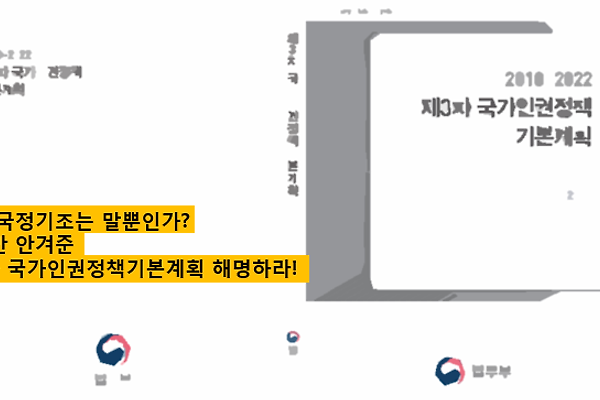 3차 국가인권정책기본계획 썸네일형 리스트형 [성명] 문재인 정부의 국정기조인 인권은 말뿐인가? 인권 국정기조는 말뿐인가?실망만 안겨준 제3차 국가인권정책기본계획 해명하라! 지난 4월 20일, 법무부는 제3차 국가인권정책기본계획 초안을 홈페이지에 공개했다. 매우 실망스럽다. 우리는 2007년부터 시작된 국가인권정책기본계획이 지난 이명박/박근혜 정권을 거치며 사실상 종이조각으로 무력화 되었던 터라, 문재인 정부의 인권정책 전반을 담게 되는 이번 제3차 국가인권정책기본계획에 많은 관심과 기대를 가졌던 것이 사실이다. 제3차 국가인권정책기본계획의 수립과정은 처음부터 순탄하지 않았다. 원래대로라면 2017년부터 시작되어야 했지만, 대통령 탄핵과 조기대선을 거치며 박근혜 정부에서 수립된 제3차 국가인권정책기본계획을 그대로 문재인 정부가 이행할 수는 없는 상황이었다. 국가인권정책기본계.. 이전 1 다음